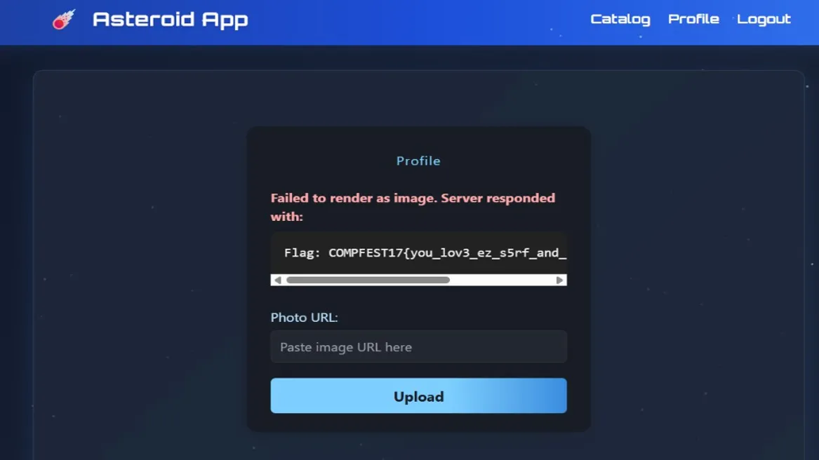 So when I opened the web, it showed a login/register page. After registering and logging in, I landed on the dashboard. Heading over to the Profile tab, there’s a Photo URL field — and the hint is pretty clear, that’s where the flag is hiding.
