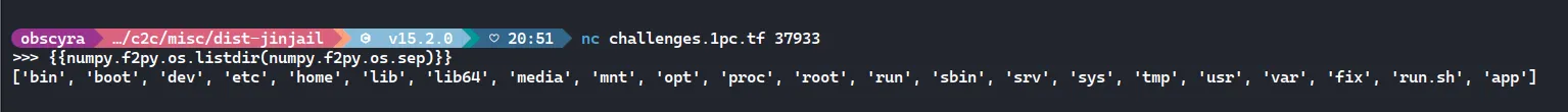 {{numpy.f2py.os.listdir(numpy.f2py.os.sep)}}