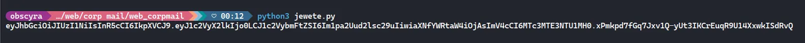 payload = { "user_id": 4, "username": "mike.wilson", "is_admin": 0, "exp": int(time.time()) + 86400}