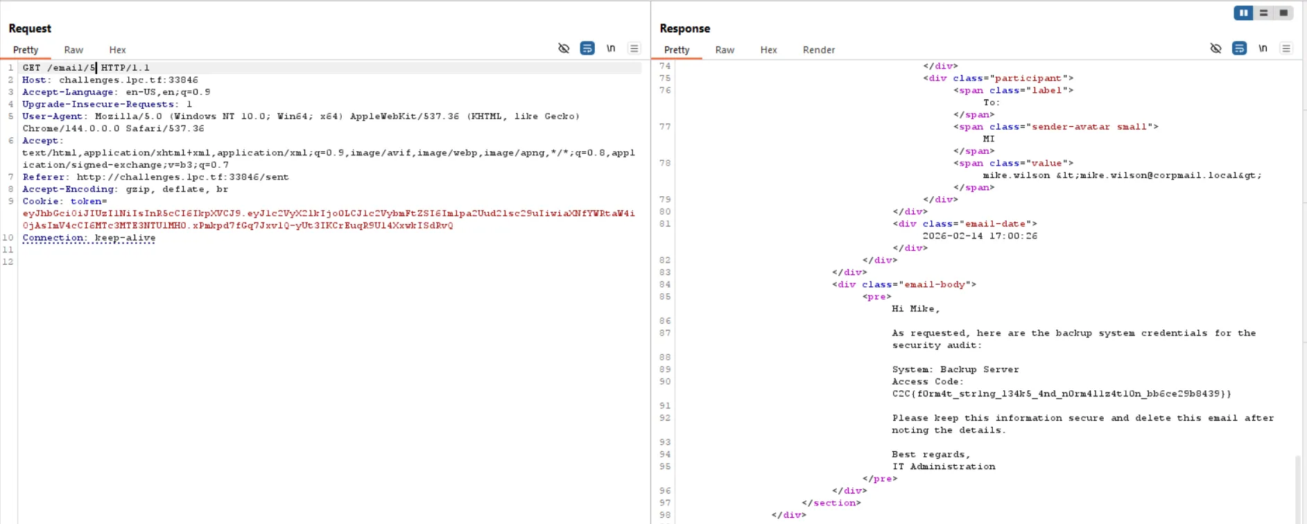 Reading the source first was the right move. Inside db.py, the database is seeded with some test emails. One of them is interesting: Admin sends an email to mike with subject:
